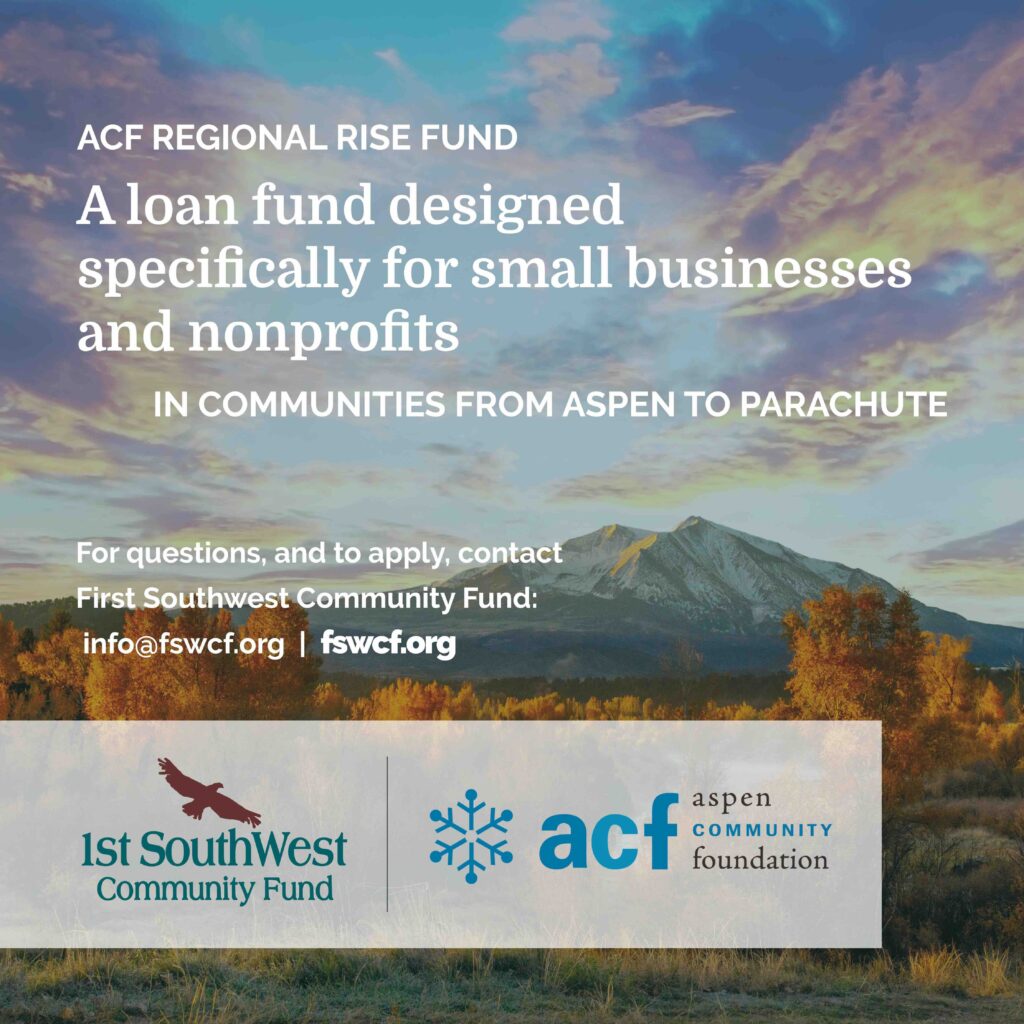 Our first pilot fund is with First Southwest Community Fund, which is a loan fund designed specifically for small businesses and nonprofits in communities from Parachute to Aspen.